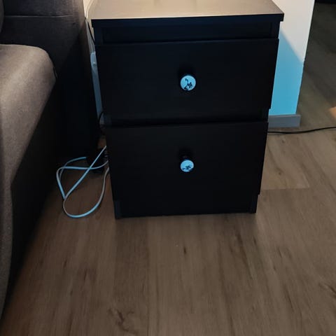 Myydään erittäin siisti ja täysin ehjä yöpöytä kahdella vetolaatikolla.