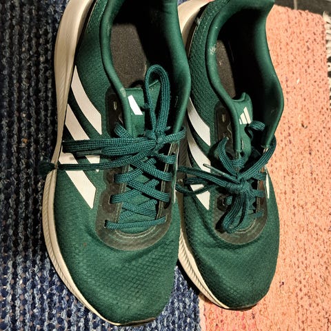Adidas juoksukengät, koko 44. Väriltään vihreät tummilla ja vaaleilla yksityiskohdilla. Päällinen on tekstiiliä ja synteettistä materiaalia, pohjassa kuvioitu kumipohja. Nauhakiinnitys. Soveltuvat juoksuun ja muuhun liikuntaan.käytönjälkiä mutta käyttökuntoiset
