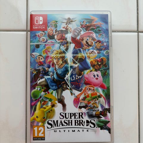 Nintendo Switch Super Smash Bros. Ultimate -peli. Fyysinen pelikasetti ja kotelo. Ikäraja PEGI 12. Taistelupeli, jossa mukana useita Nintendo-hahmoja ja eri pelitiloja sekä yksin- että moninpeluun käyttöön Nintendo Switch -konsolilla.