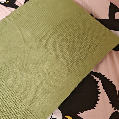 Lastenhuoneen vuoteen päällisenä ollut. Pesty. Eläimetön koti.
