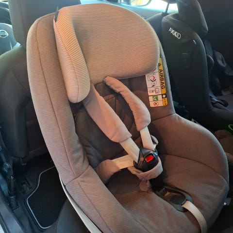 Istuimessa on viisipistevaljaat, pehmustetut olkavyöt ja säädettävä pääntuki. Väri on musta. Asennetaan autoon auton kolmipisteturvavyöllä.