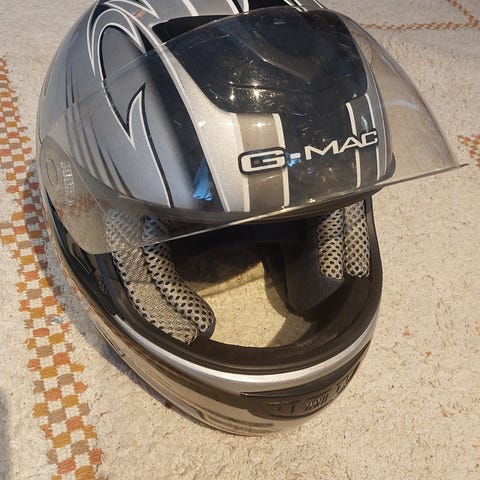 Kypärä on siistissä hyvässä kunnossa, ei naarmuja tai kolhuja kuoressa. Visiirissä normaalia käyttönaarmua, mutta näkyvyys hyvä. Vuori puhdas, ei hajuja. Ollut tytön käytössä.