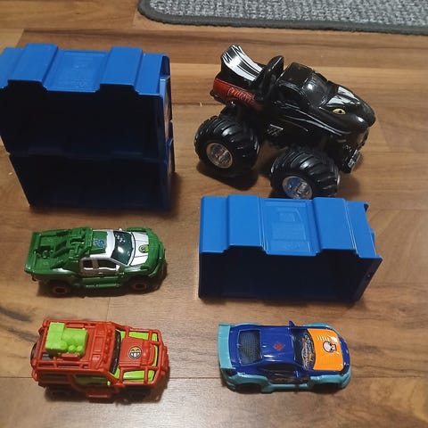 Iso kasa autoja seuraavalle leikkijälle. Toiminnallisissa autoissa patterit vähissä.