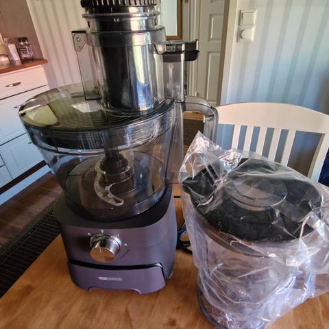 Jäänyt anopilla vähälle käytölle ja nyt myydään jollekin, jolla tällaiselle tarvetta. Käytönjälki näkyy ainoastaan muoviosassa, jolla painetaan vihannekset raastettavaksi (näkyy kuvassa 3.). Käyttöohjeita löytyy netistä.