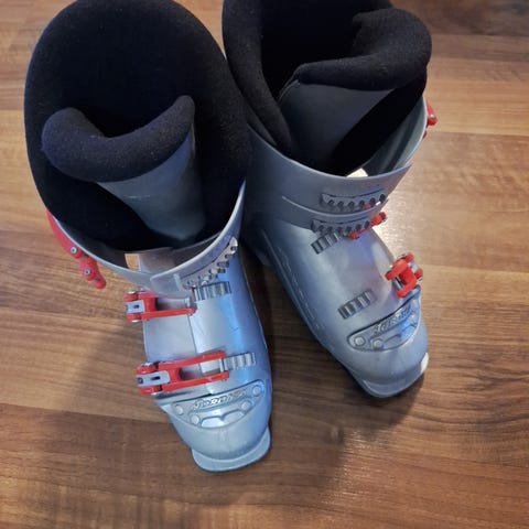 Tecnica JT3 laskettelumonot, koko 39/40 (pohjassa merkintä 25.5). Väri musta oransseilla yksityiskohdilla. Monossa useita solkikiristyksiä ja leveä tarrakiristys varressa.