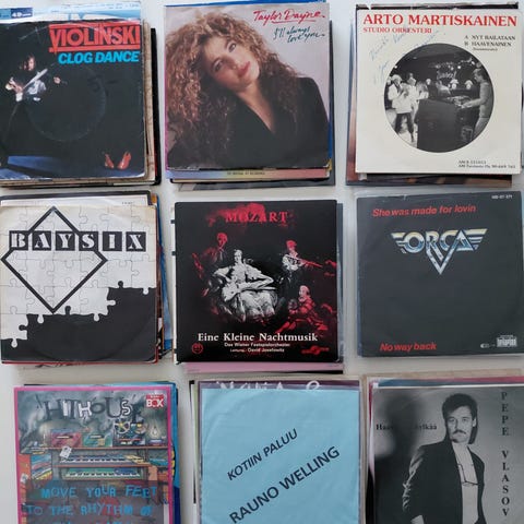 Kaikki kuvien levyt 1e kpl ja postikulut 5e päälle.