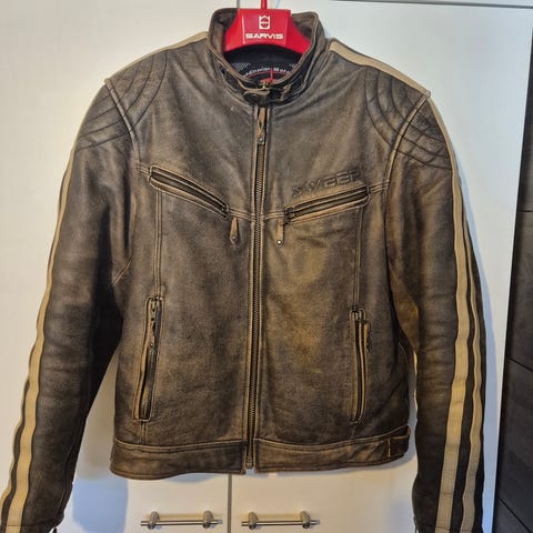 Sweep nahkainen ajotakki musta-valkoinen. Sporttinen malli jonka vuoksi vastaa enemmä. kokoa pieni XL. Kokolapussa lukee XXL. Mitat: Hartialeveys 49cm. Vyötäröleveys 54cm. Pituus edestä 62cm. Pituus takaata 72cm.