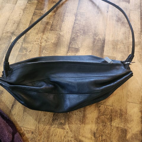 Marimekko nahkainen olkalaukku unisex-käyttöön. Laukku on ruskeaa nahkaa ja siinä on säädettävä olkahihna. Edessä on vetoketjutasku läpän päällä. Läpän alla ja laukun sisällä on useita taskuja pienten tavaroiden säilytykseen, mukaan lukien vetoketjutasku. Vuori on kangasta. Sopii arkilaukuksi ja työ- tai opiskelukäyttöön, kun tarvitaan tilaa perusesineille kuten lompakolle, puhelimelle ja muille päivittäisille tavaroille.