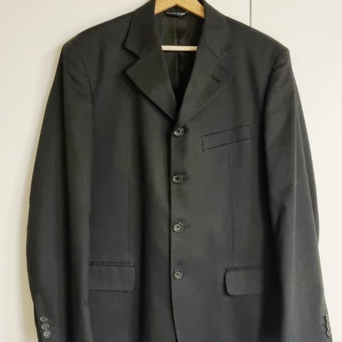 Myynnissä tanskalaisen Tom Rusborgin valmistama pikkutakki. Takki on 100% silkkiä, ja varsin kevyt ja hengittävä. Kuviointi on tuollainen windowpane-ruudullinen kalanruotokuvio. Kunto on liki uudenveroinen. Kangas on italialaisen Lanificio di Prayn kutomaa. Kyynärpäissä on vahvikkeet, jotka ovat ilmeisesti ohutta mokkanahkaa. Kaksi takahalkiota.
