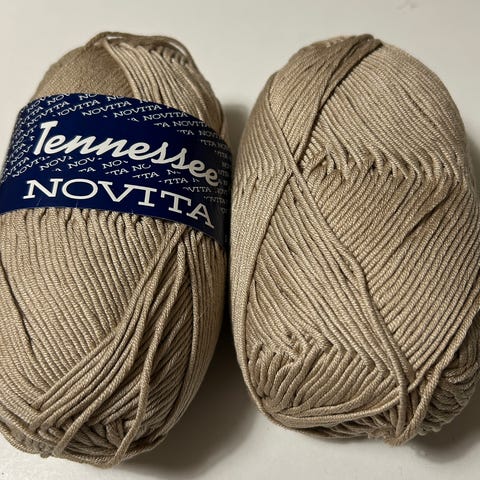 Novita Tennessee käsityölanka. 100% merseroitu puuvilla. Väri 628. 1 täysi kerä ja toinen vajaa kerä n. 80 g ylijääneitä lankoja. Kerien tarkemmat tiedot, kuten juoksevuus ja puikkosuositus, löytyvät vyötteestä kuvissa.