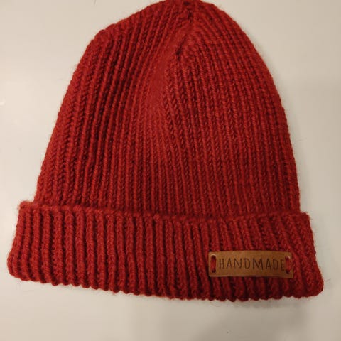 Punainen Pehmo-villa neulelangasta tehty pipo. Aikuisten koko.