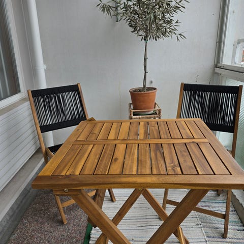 Sopii hyvin parvekkeella pöytä on 60*60 cm.