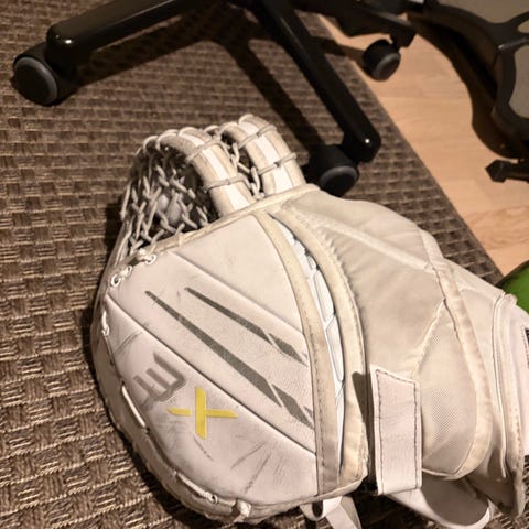 Kämmenlevy on taittunut, pussissa naru lähtenyt purkautumaan, muuten hanska hyvässä kunnossa.