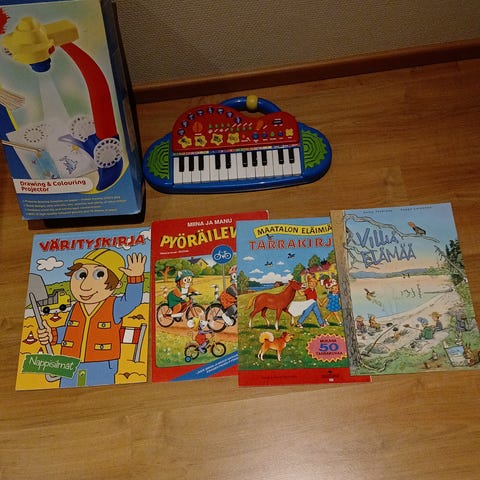 Annetaan kuvassa näkyvät lasten jutut. Mukana mm.aurinkolasit ja yövalo.