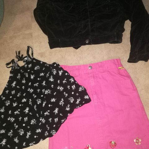 H&M lasten setti tytöille, koko 140. Settiin kuuluu pitkähihainen paita ja pitkälahkeiset housut. Väri on musta. Materiaali näyttää pehmeältä ja samettimaiselta. Paita on suoramallinen ja siinä on pyöreä pääntie. Housuissa on joustava vyötärö. Sopii arki- ja vapaa-ajan käyttöön tytöille noin koossa 140.