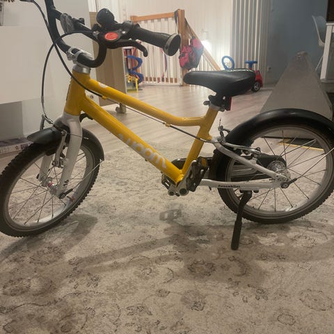 Woom 3 lastenpyörä, jossa 16" renkaat. Rungon väri violetti ja etuhaarukka valkoinen. Pyörässä on suora ohjaustanko, käsijarrut edessä ja takana sekä ketjusuoja. Takana ja edessä on irroitettava lokasuoja, joka suojaa roiskeilta. Satula ja ohjaustanko ovat säädettävissä, joten pyörä sopii eri pituisille lapsille.