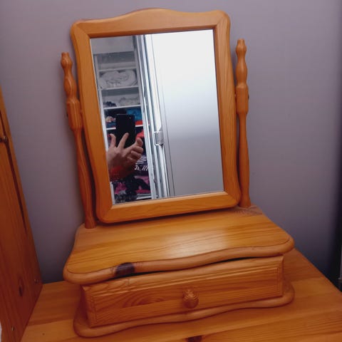 IKEA seinäpeili hyllyllä ja koukuilla