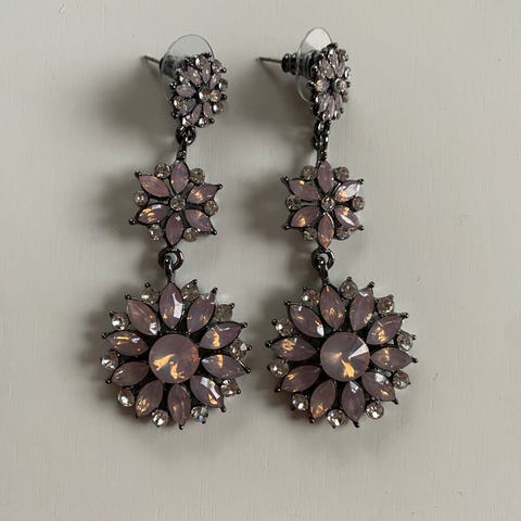 Upeat käsintehdyt korvakorut jossa vaaleanpunaisia pisaranmuotoisia lasihelmiä . Huggie-rengas 18 K PVD-kullattu kirurginteräs.