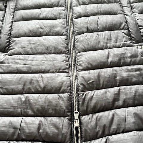 Ihana, vaaleanpunainen Espritin kevyttoppatakki. Koko L. Huppu, vetoketjulliset taskut.