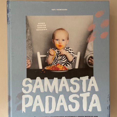 Outi Tuominen Samasta padasta -keittokirja. Kirja sisältää reseptejä, jotka on suunniteltu koko perheelle vauvoista aikuisiin. Reseptit on koottu niin, että samasta ruoasta voidaan valmistaa sopiva annos sekä lapsille että aikuisille. Kirjassa on ohjeita arjen ruokiin ja välipaloihin sekä vinkkejä lapsiperheen ruokailun helpottamiseen. Suomenkielinen kovakantinen keittokirja.