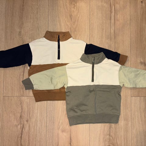 Kaksi Lindexin vetoketjullista collegepaitaa, koko 92. Hyvässä kunnossa.
