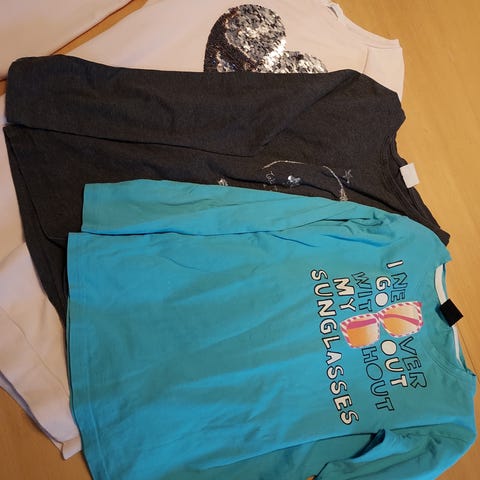 Lindex lasten pitkähihainen paita, koko 140. Sopii tytöille. Materiaalina puuvilla. Väritys on kirjava, kuvassa useampi erisävyinen paita, joissa yhdessä perhoskuvio.