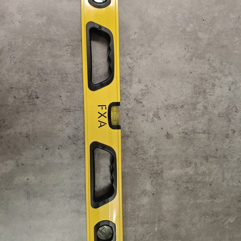Ehjä vatupassi, mutta toisessa päässä valkoista maalia.