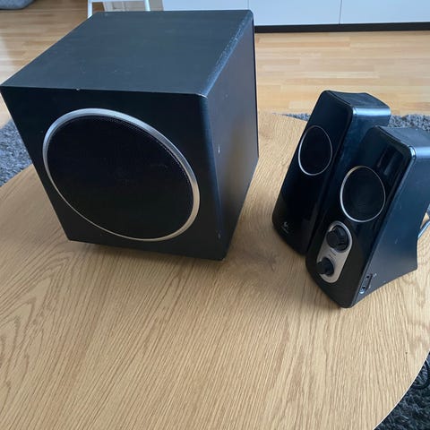 Näppärän pienikokoinen 2.1 kaiutinsetti (2x satelliitti + subwoofer) tietokoneelle tai muulle sopivalle äänilähteelle jossa 3,5mm jakkiliitin.