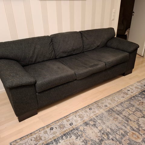Tukevarunkoinen sohva. Päälliset kuluneet.