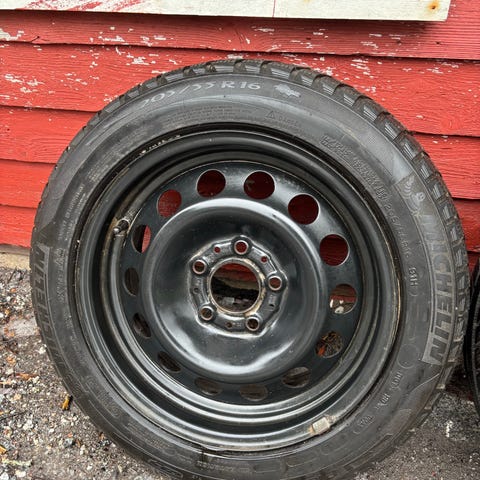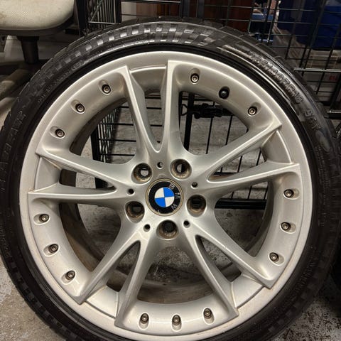 Myydään suorat ja hyväkuntoiset bmw vanteet, päällä huonot nastarenkaat.