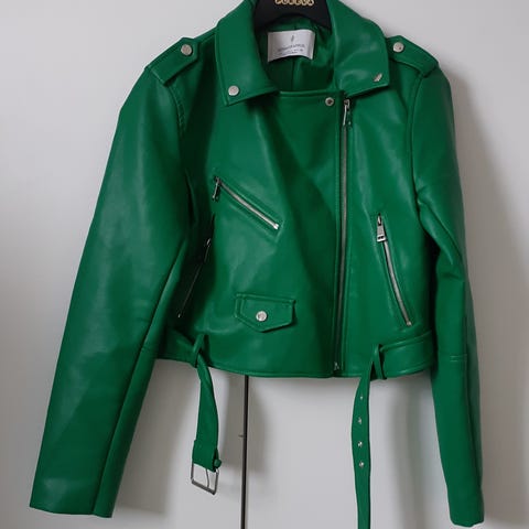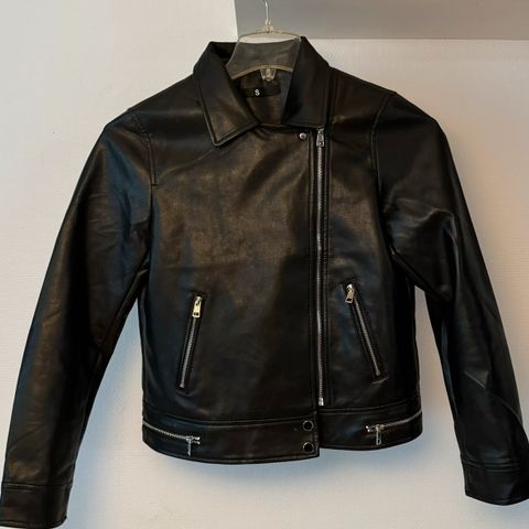 Musta tekonahkainen lyhyt takki.