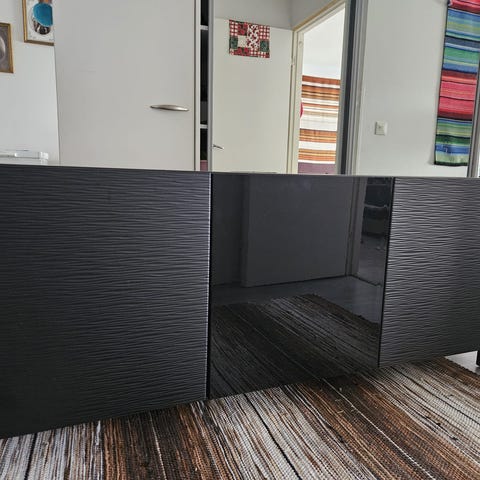 IKEAn erillisistä EKET-seinäkaapeista rakennettu ”TV-taso”. Koostuu seuraavista: