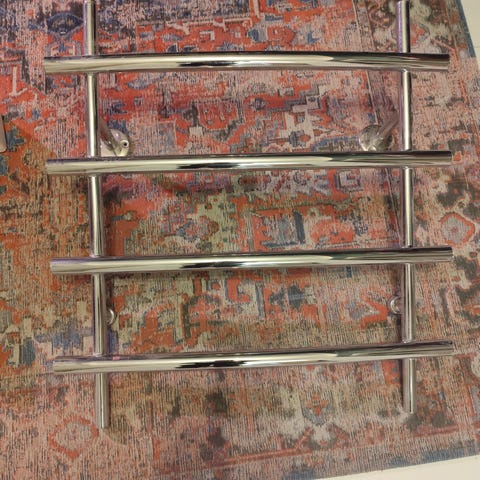 Kromattu vesikiertoinen kylpyhuonepatteri. Hyväkuntoinen, siisti ja täysin toimiva. Sopii pyyhkeiden kuivatukseen ja kylpyhuoneen lämmitykseen
