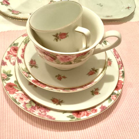 Ruusu kahvikupit ja aluslautaset