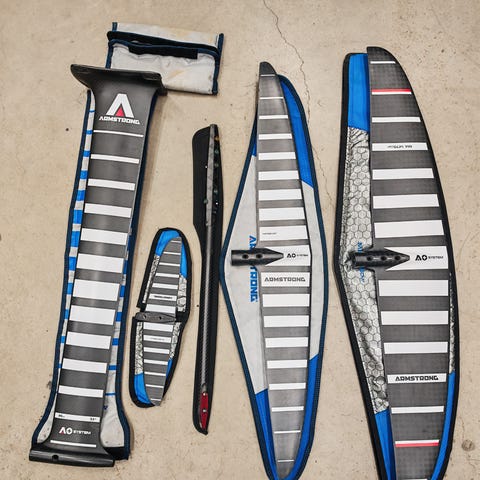 Fanatic Aero 2000 foil-etu- ja takasiipi/stabilisaattori 300. Mukaan tulee suoja pakkaus. Etu-ja takasiivissä jonkin verran kulumaa ja naarmuja. Mutta ei syviä tai sellaisia jotka haittaisi foilausta. Tämä sopii hyvin ensimmäiseen foiliin. Nouto tai lähetys