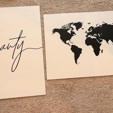 Sisustusjuliste ja siihen kehykset. Kehykset 32cm x 23cm.
