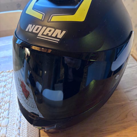 Avattava Nolan N100-5 moottoripyöräkypärä koko M. Kypärässä integroitu N-Com B601R puhelinjärjestelmä. Mukaan Nolan-suojapussi säilytystä ja kuljetusta varten sekä puhelinjärjestelmän latauspiuha.