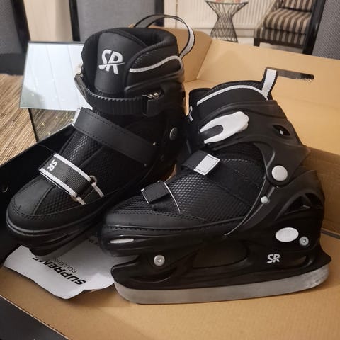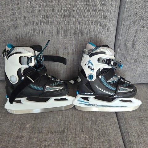 Myydään hyväkuntoiset Rookie 4 -säädettävät luistimet, koko 33–36, sisäpohjan pituus noin 22–24,4 cm. Helppo koon säätö napilla, kätevä nauhaton kiinnitysjärjestelmä soljilla ja remmeillä. Tukeva varsi ja pehmeä sisävuori. Terät siistit ja hyvässä kunnossa. Mukaan suojat terille. Yleisilme erittäin siisti, vähäiset käytön jäljet.