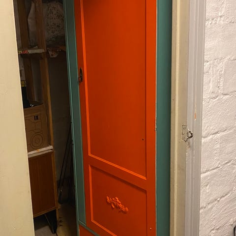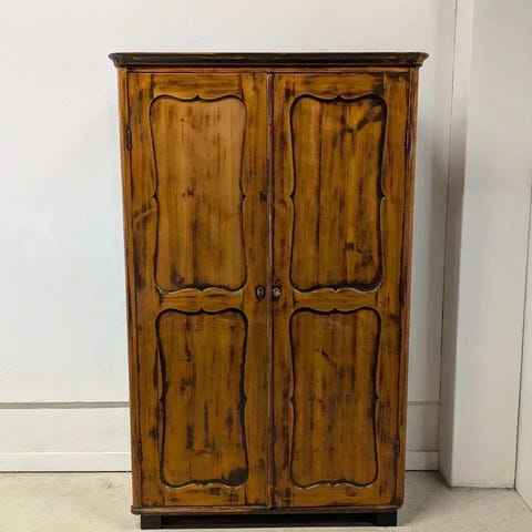 Maailmaa nähnyt täyspuinen antiikki kaappi joka taipuu moneksi.
