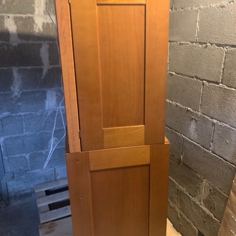 Kuvassa näkyvät kaapit jotka säästetty keittiöremontissa, huonokuntoisimmat heitetty pois. Mukaan pussillinen jalkoja, kiinnikkeitä ym. Tule katsomaan ja noutamaan pois.