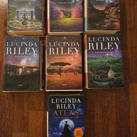 Lucinda Rileyn Seitsemän sisarta kovakantinen romaani. Siistissä, luetussa kunnossa. Kolhut näkyvät kuvissa.
