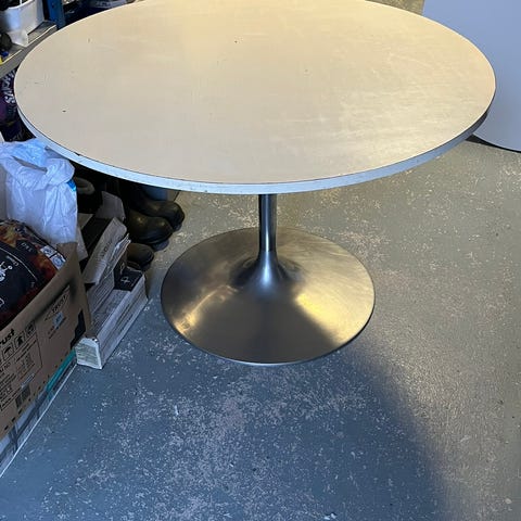 Myydään erinomaisessa kunnossa oleva Ikean pyöreä ruokapöytä. Halkaisija 118cm. Pöydässä yksi ihan pieni jälki, joka näkyy vain läheltä katsottaessa. Pinta erittäin kestävä ja helppo pitää puhtaana. Erittäin jykevä ja siisti pöytä. Pöytälevyn saa irti kuljetuksen ajaksi.