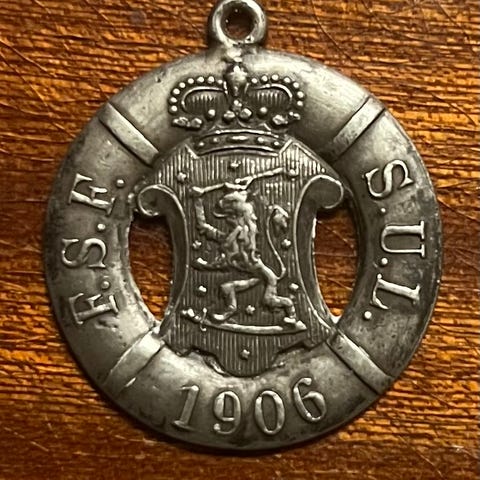 Suomen W&U liiton Turun piiri, v 1912, hopeaa 818, 13g. 10km pyöräily. Postimaksu 2,75€ tai diili