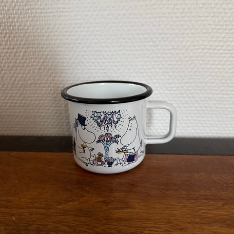 Muurlan Muumi Talvi 2017 -emalimuki. Mukissa on talvinen kuva muumeista. Muki on ehjä ja kunnoltaan uutta vastaava. Vetoisuus 3,7dl. Kyseinen muki ei ole enää tuotannossa.