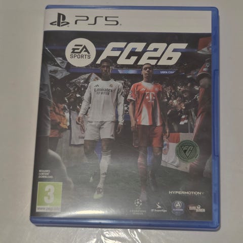 EA Sports FC 25 PlayStation 5 -peli. Jalkapalloaiheinen videopeli PS5-konsolille levyversiona. Pelissä on viralliset joukkueet ja stadionit sekä erilaisia pelitiloja yksin- ja moninpelille. Ikäraja PEGI 3 / USK 0 (kuvasta tulkittuna). Sopii käytettäväksi