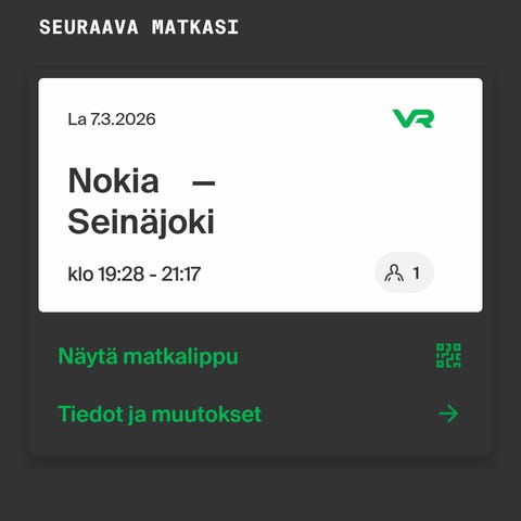 Vaasa-Tikkurila pe 20.3. junalippu