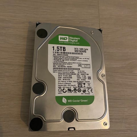 Western Digital Caviar Green 3,5" kiintolevy, kapasiteetti 1,5 TB. SATA-liitäntä (SATA/300), 64 Mt välimuisti. Soveltuu pöytäkoneisiin tai ulkoiseen koteloon asennettavaksi lisätallennustilaksi esimerkiksi tiedostoille ja varmuuskopioille.