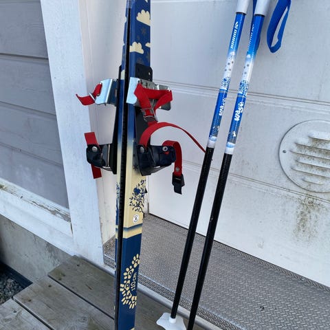 Kenkiin kiinnitettävät ensisukset. Sauvat saa mukaan.