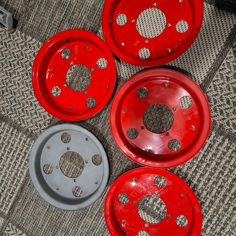 Alkuperäinen jalkatappirunko. Toinen kumi paikallaan. Jalansijat näyttäsi olevan pulverimaalattu mustaksi.