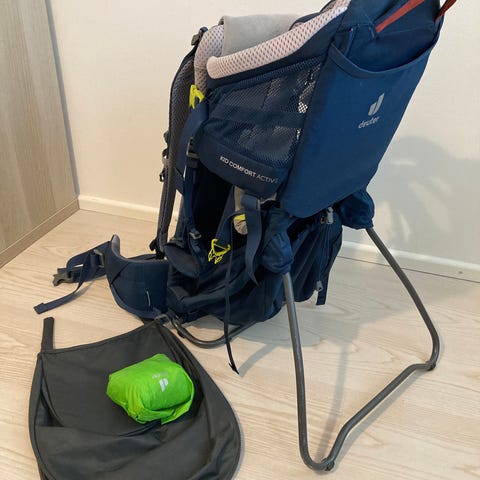 Deuter lasten kantoreppu harmaasävyisenä. Reppu on suunniteltu lapsen kantamiseen selässä ja siinä on säädettävät, pehmustetut olkaimet sekä lantiovyö kantajan tukemiseksi. Lapsen istuinosassa on pehmustettu selkä- ja niskatuki sekä säädettävät valjaat. Reppu sisältää useita taskuja ja säilytystilaa esimerkiksi varusteille. Soveltuu ulkoiluun ja retkeilyyn lapsen kanssa.